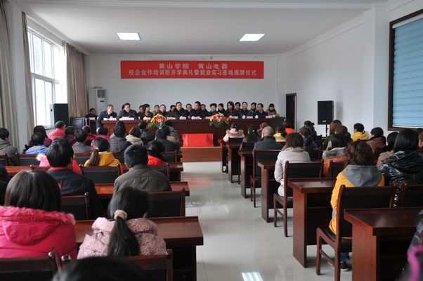 2月28號下午,黃山學(xué)院和我公司舉行校企合作培訓(xùn)班開學(xué)典禮暨就業(yè)實習(xí)基地揭牌儀式,縣委常委、宣傳部長蔣曉放、縣人大常委會副主任程春偉、縣政協(xié)副主席程海兒、黃山學(xué)院副院長樊嘉祿出席儀式,縣人社局、經(jīng)信委、科技局、團(tuán)縣委、公司負(fù)責(zé)人及繼續(xù)教育班75名